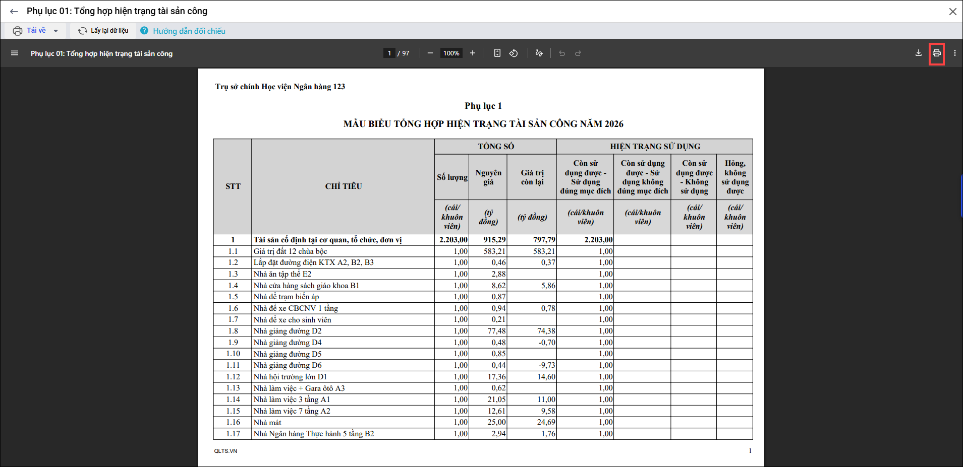Bài viết hướng dẫn cán bộ QLTS in và lập báo cáo công khai theo Công văn 642/BTC-QLCS.