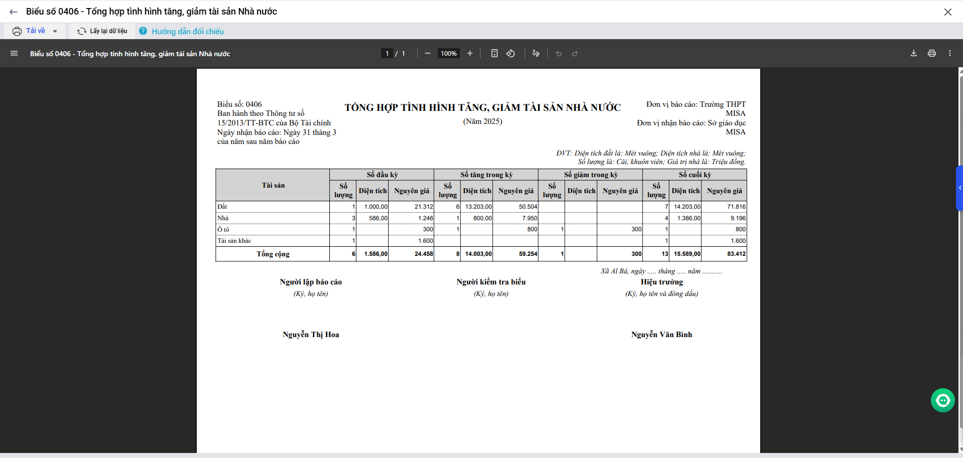 Bài viết giới thiệu tính năng mới giúp đơn vị in được Biểu số 0406 – Tổng hợp tình hình tăng, giảm tài sản Nhà nước.