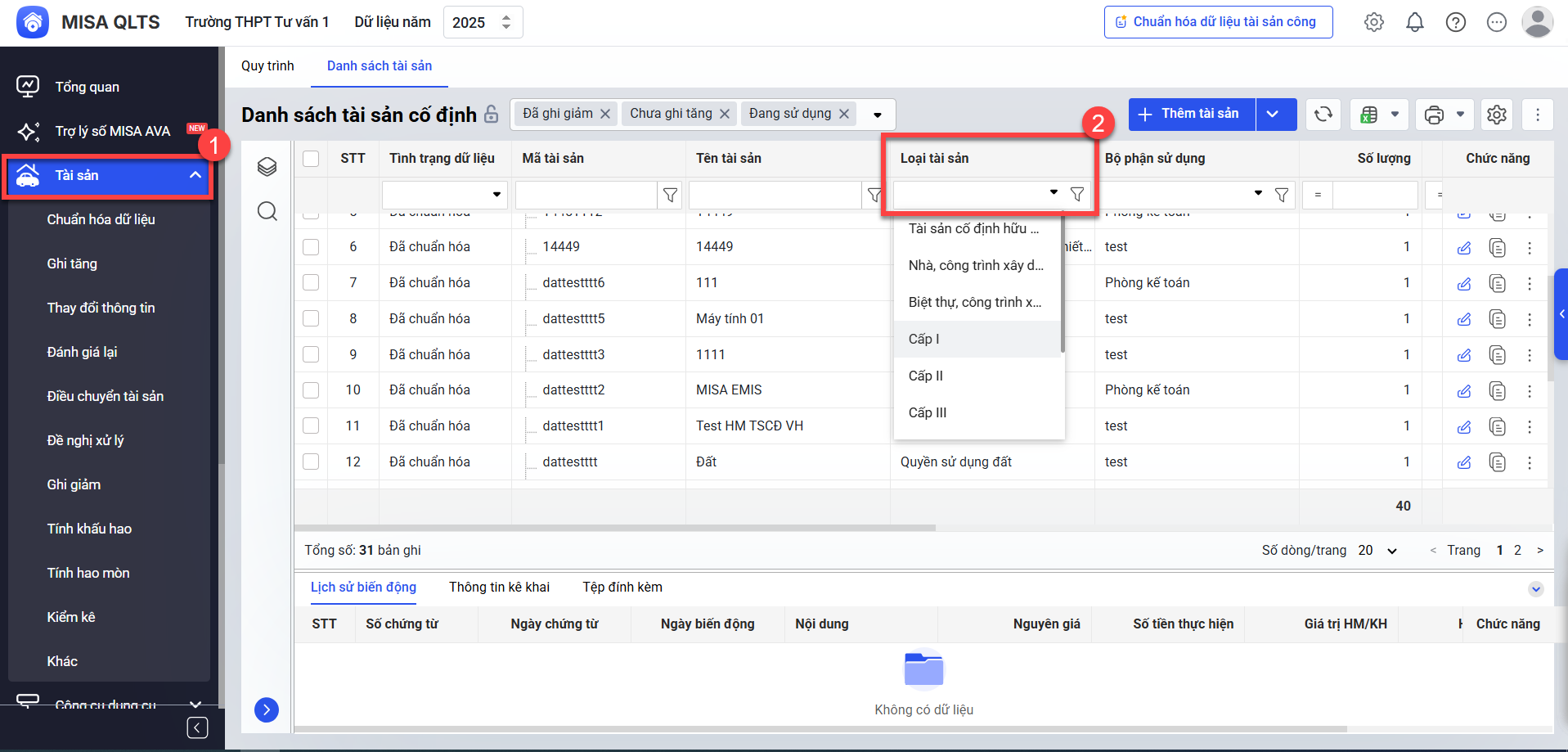 Nội dung bài viết bao gồm những tiện ích của tại màn hình danh sách tài sản như: Cập nhật thông tư, Chuẩn hóa dữ liệu, Ghi tăng tài sản, Ghi giảm tài sản…