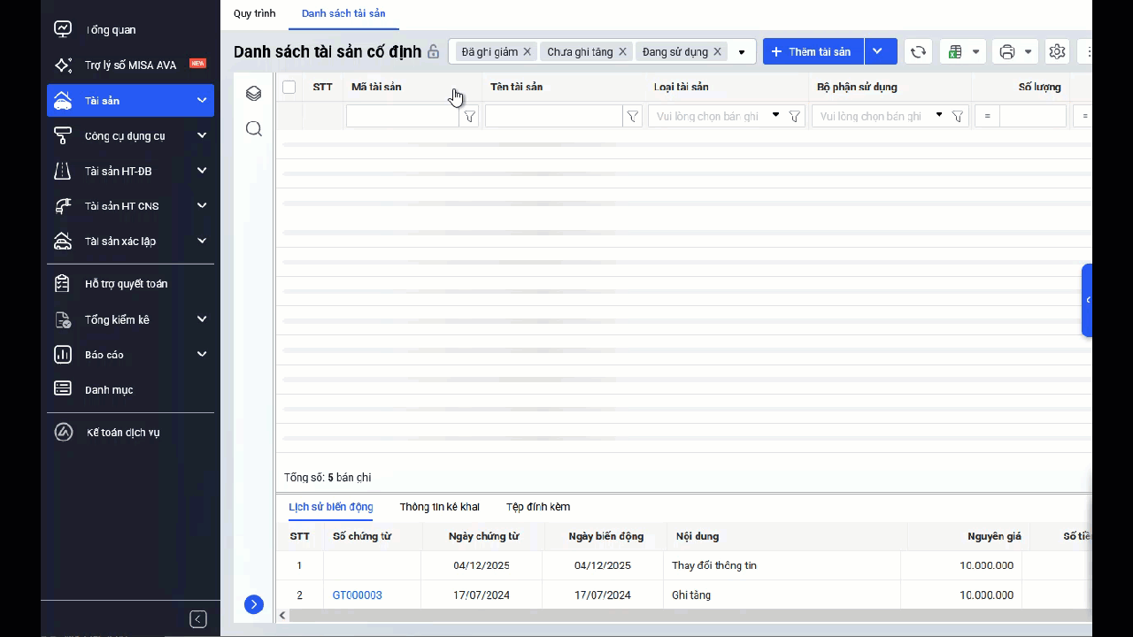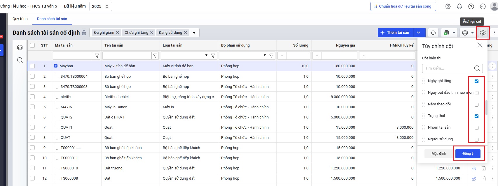 Bài viết này giúp anh/chị dễ dàng hiểu và sử dụng các tiện ích tại màn hình danh sách tài sản để thao tác nhanh, đảm bảo dữ liệu tài sản luôn đầy đủ, chính xác và tuân thủ quy định.