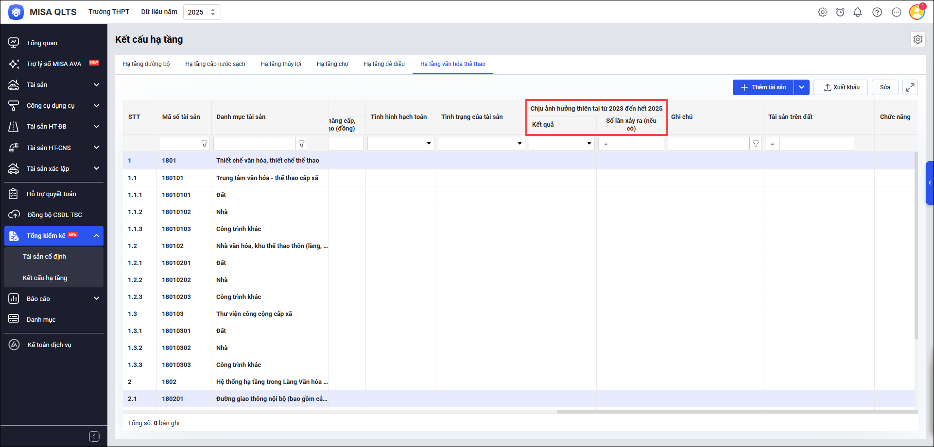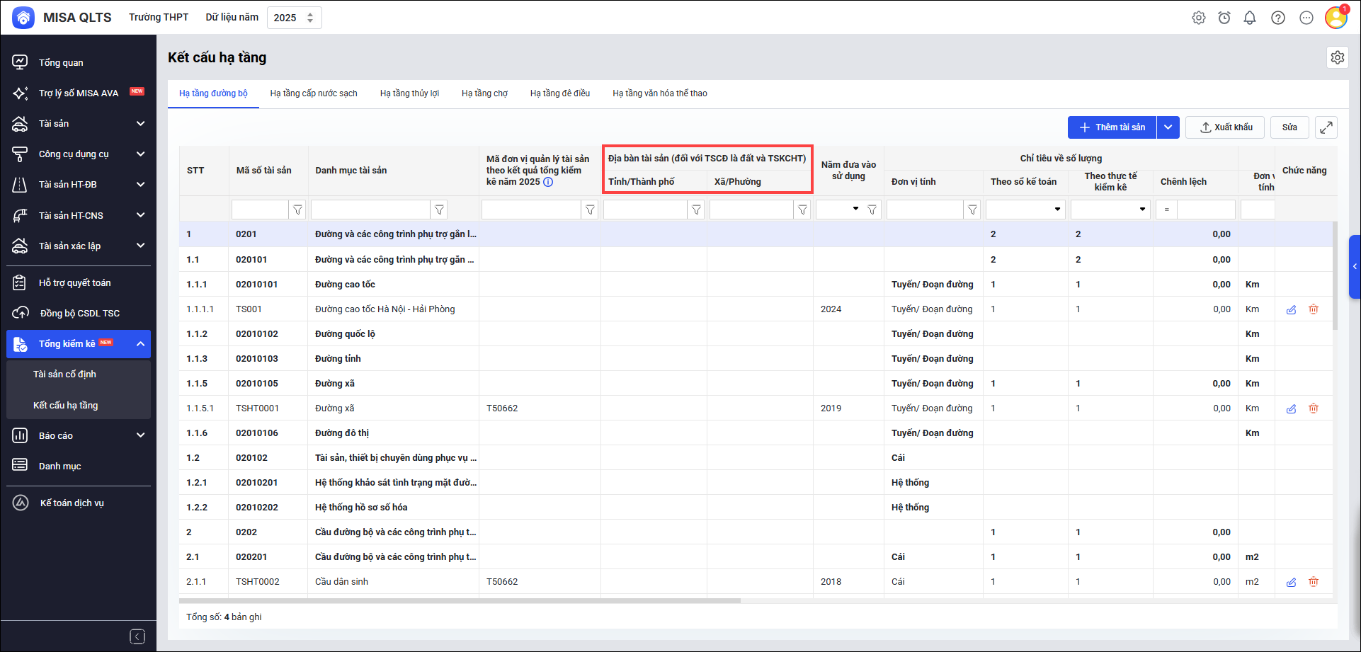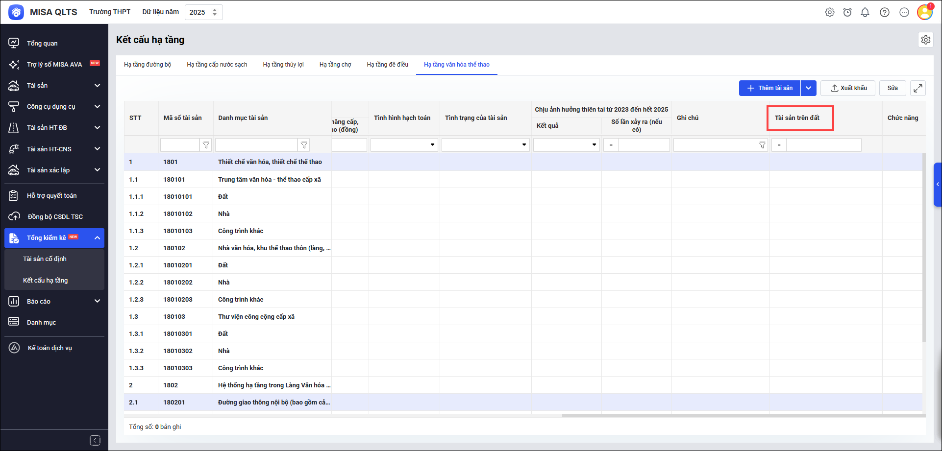 4. Bổ sung tài sản trên đất, phục vụ công tác gán nhà, công trình xây dựng trên đất gắn liền với Đất (áp dụng cho Tài sản kết cấu hạ tầng thuộc thiết chế văn hóa, thiết chế thể thao, Làng Văn hóa – Du lịch các dân tộc VN)