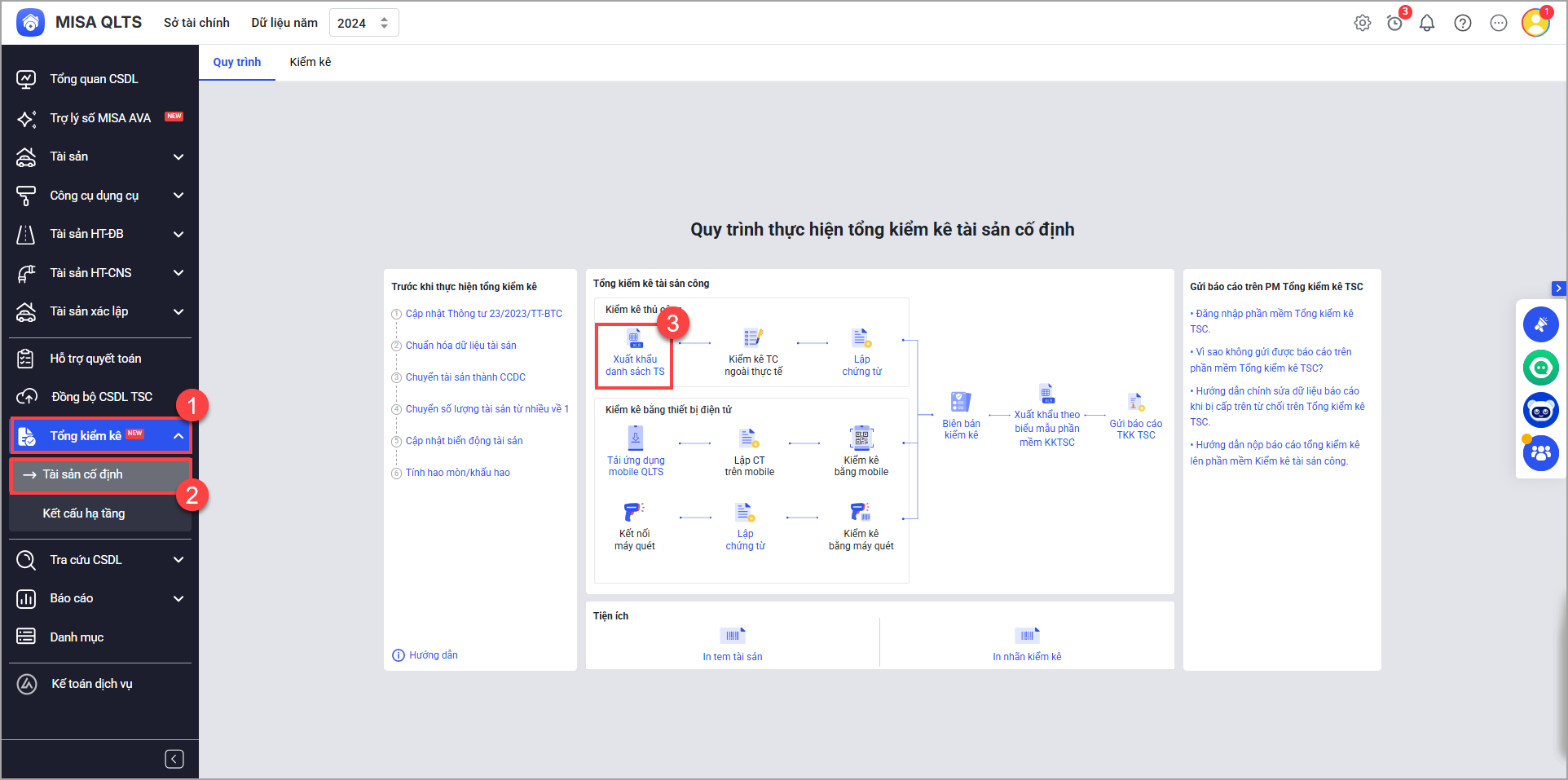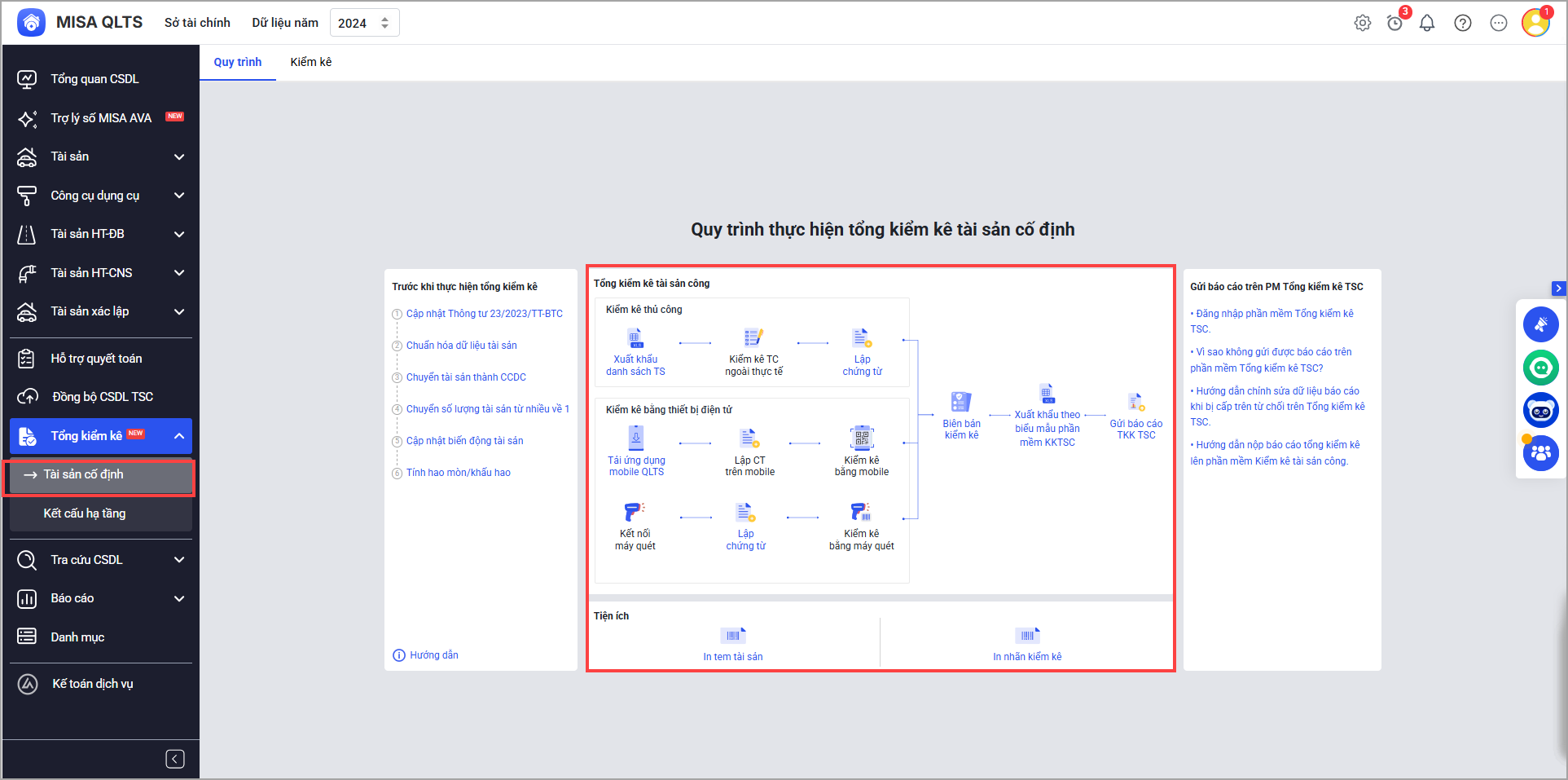 - Trên quy trình Tổng kiểm kê, loại bỏ tính năng Báo cáo trên phần mềm QLTS