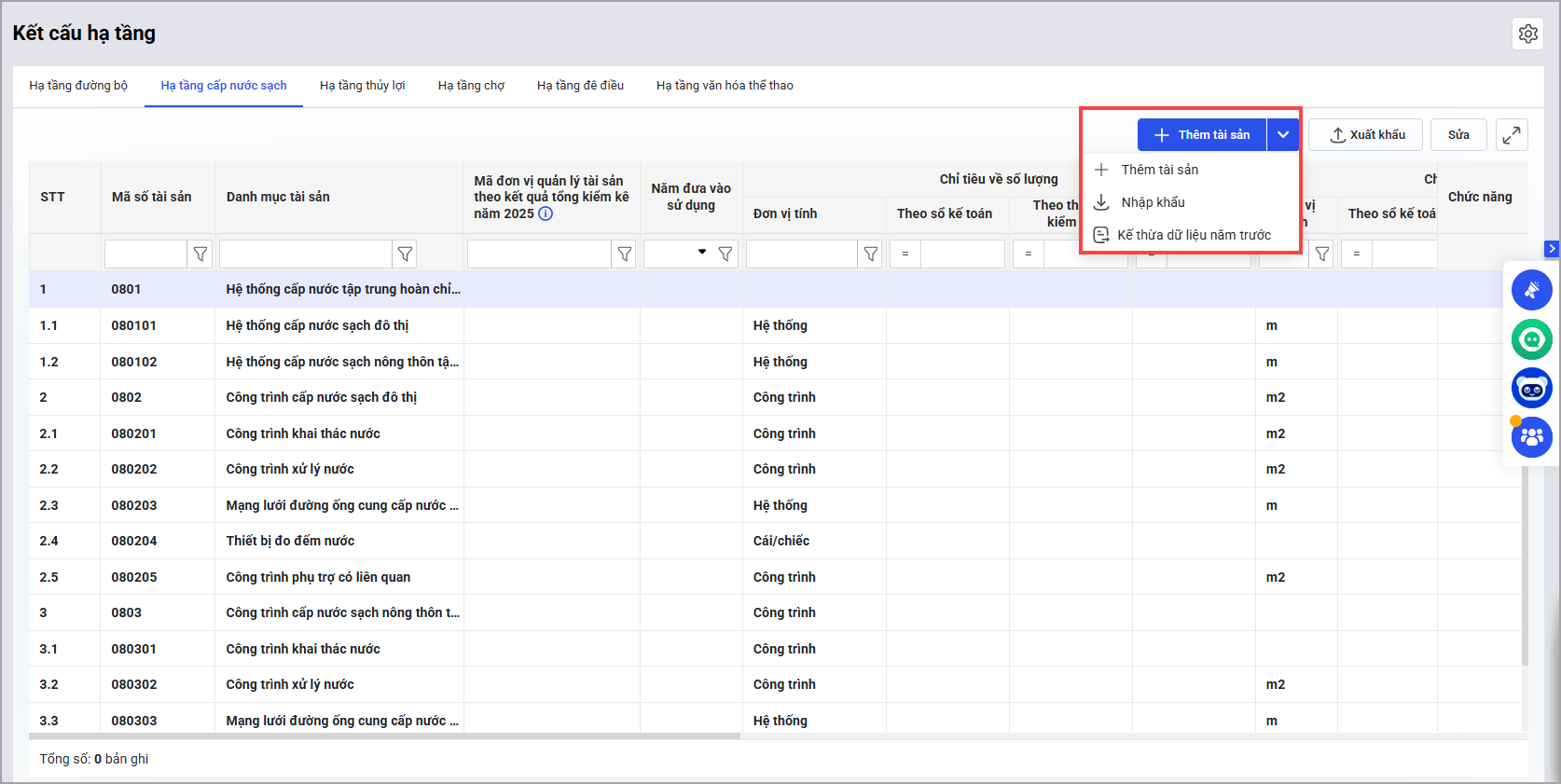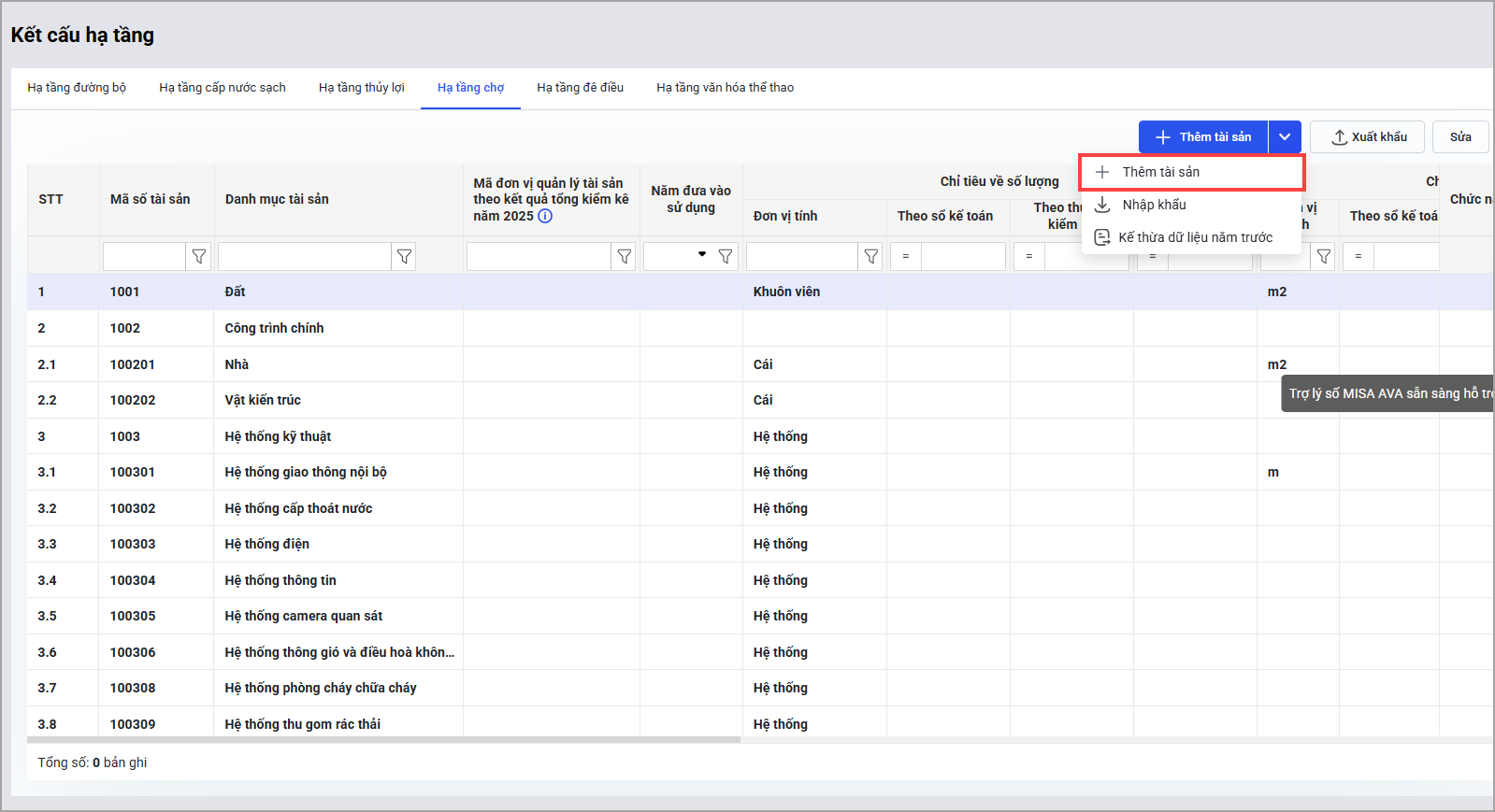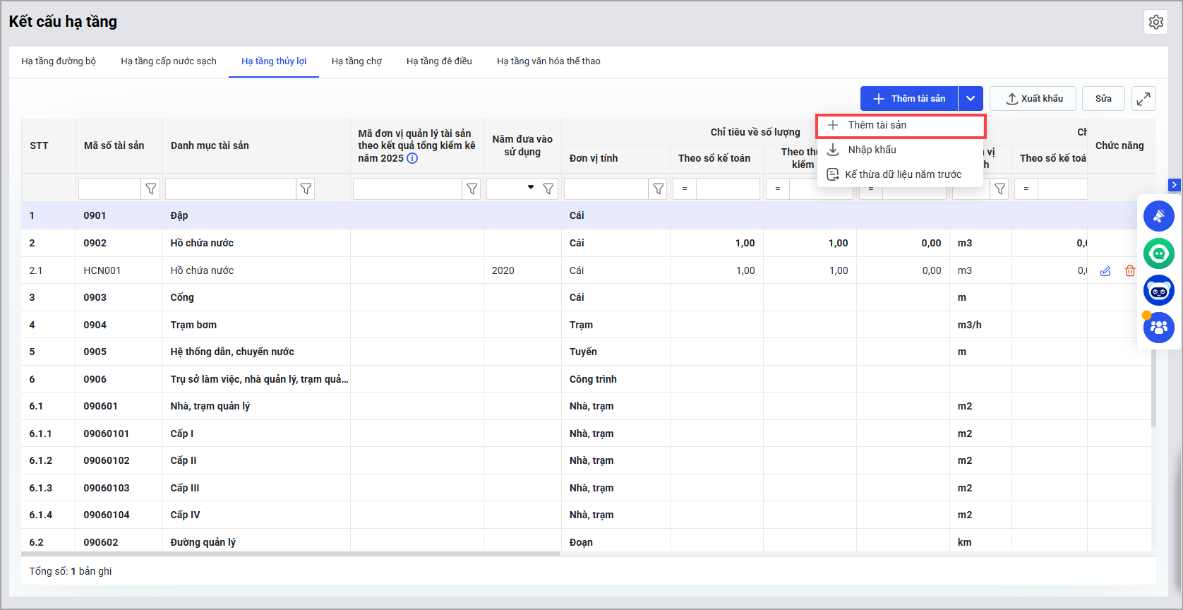 Bước 1: Thiết lập loại tài sản kết cấu hạ tầng