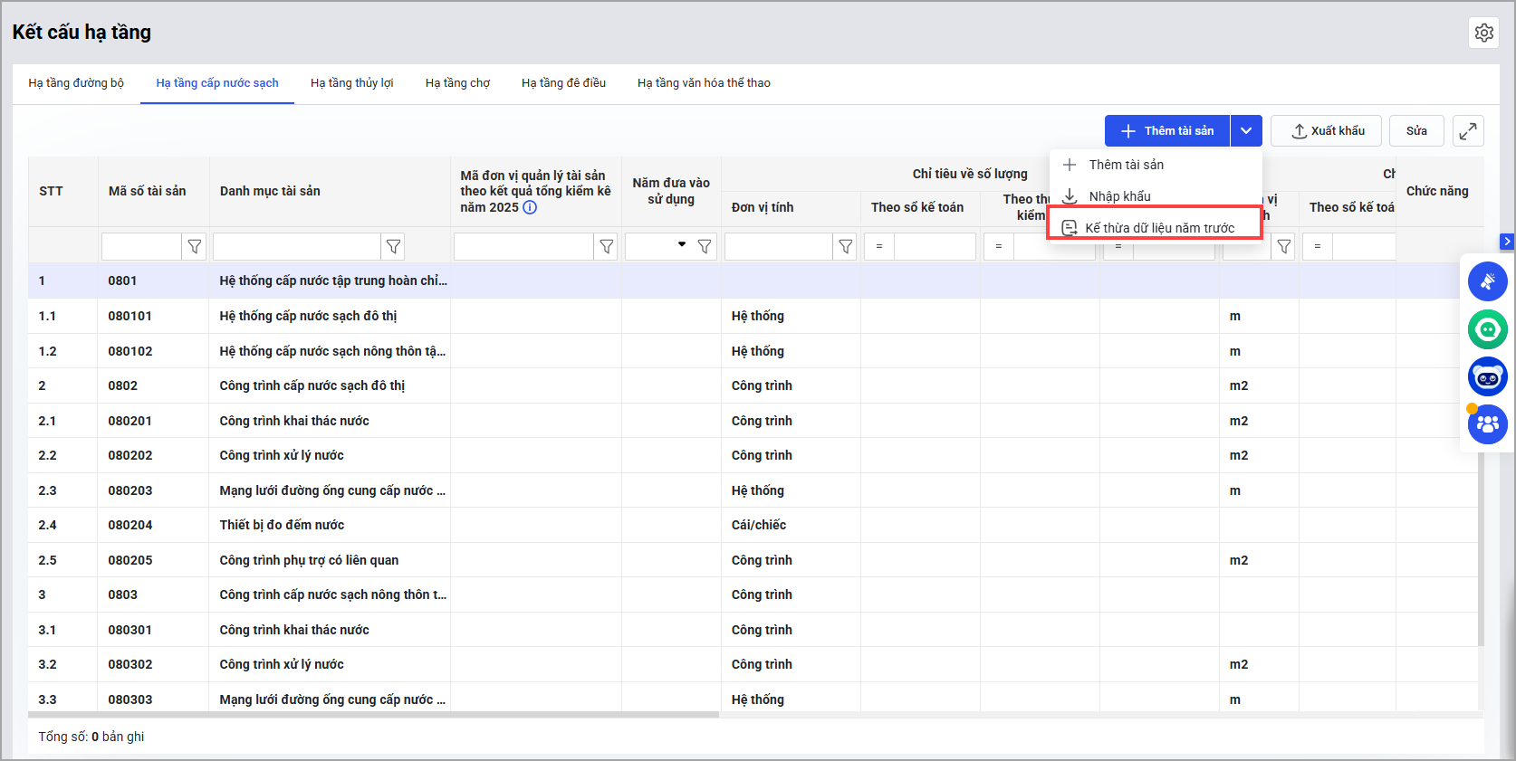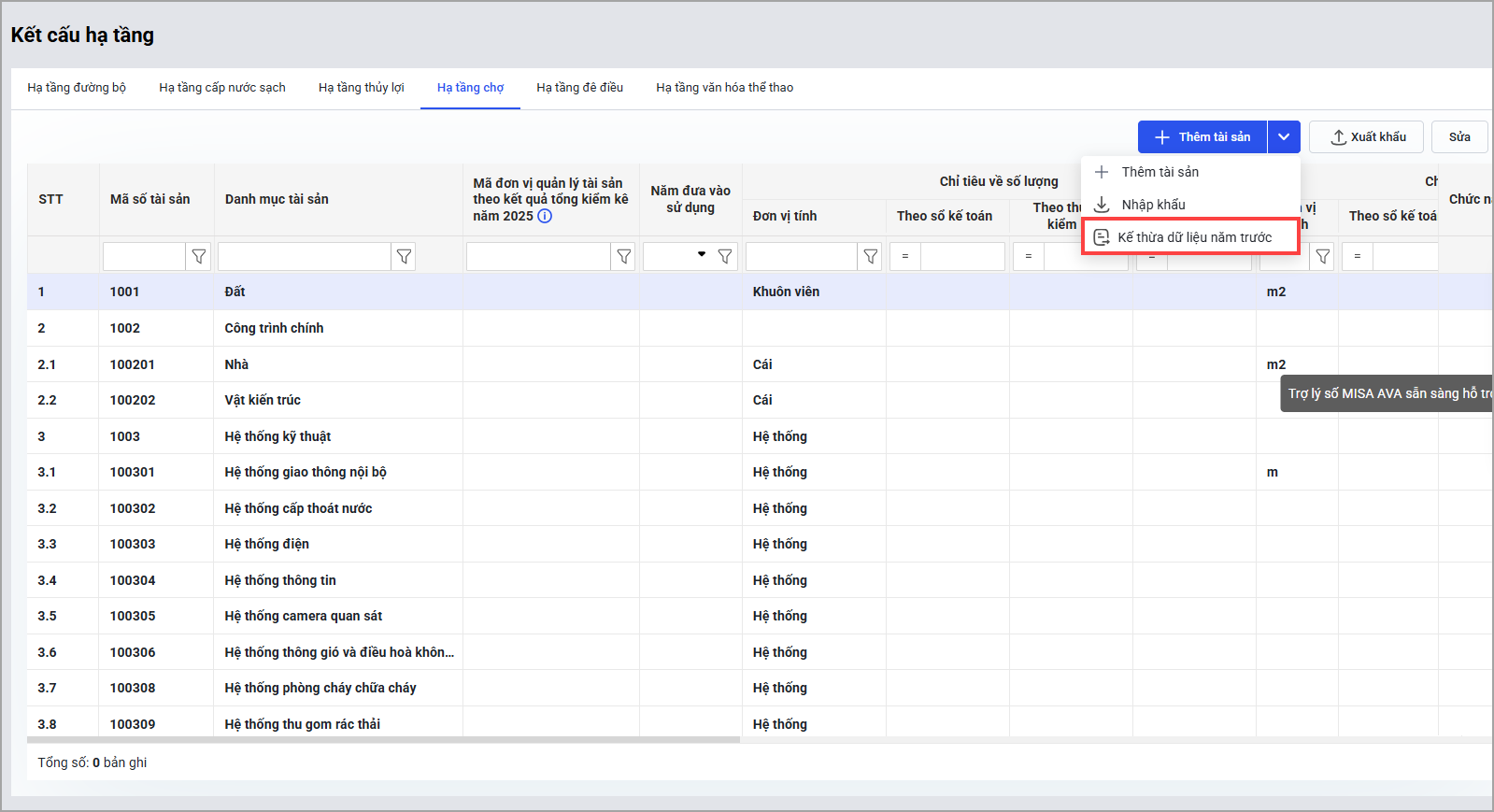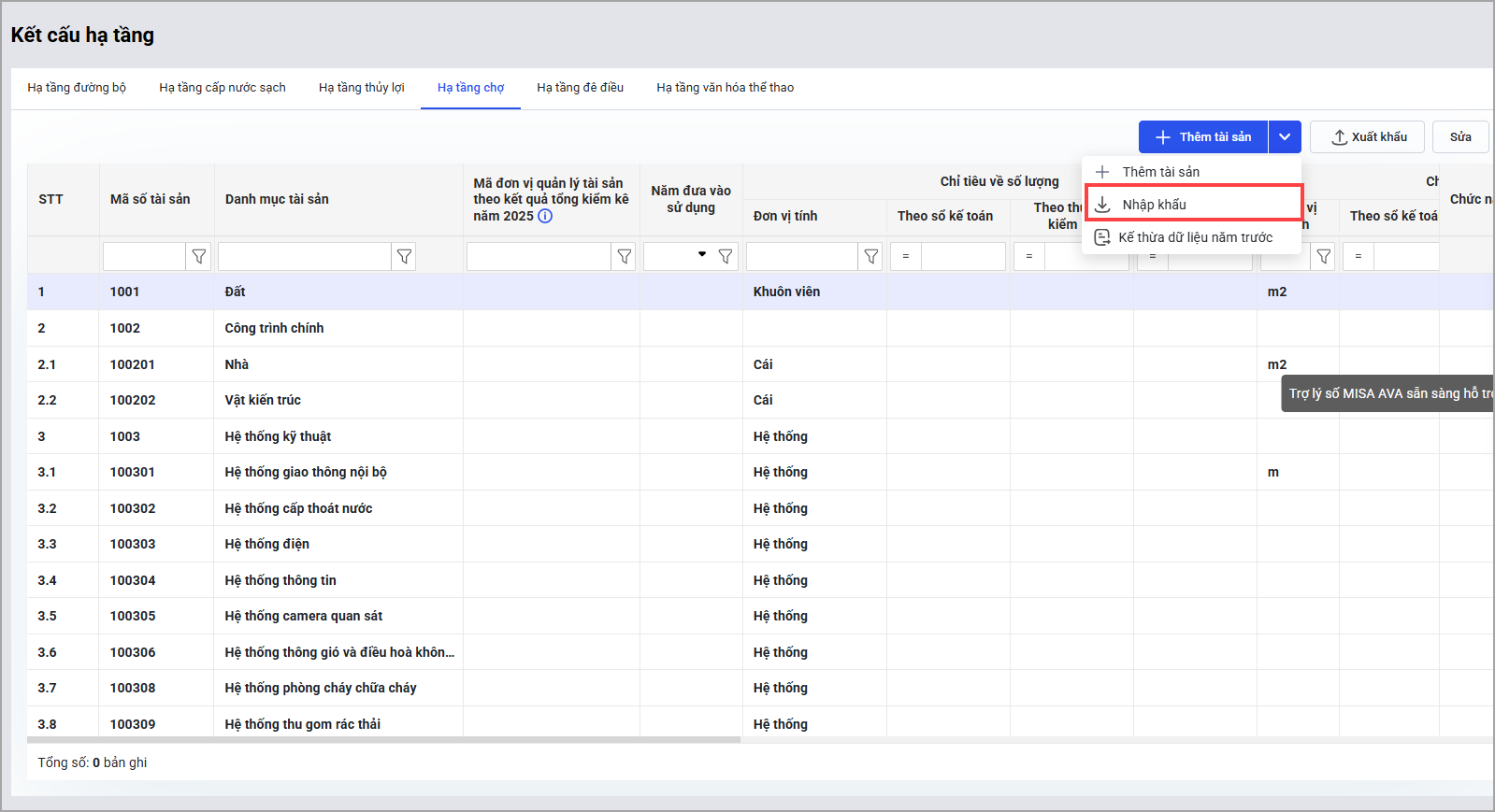 Bước 1: Thiết lập loại tài sản kết cấu hạ tầng