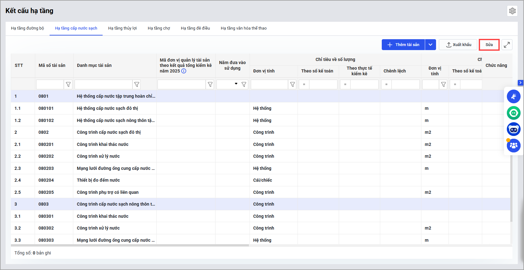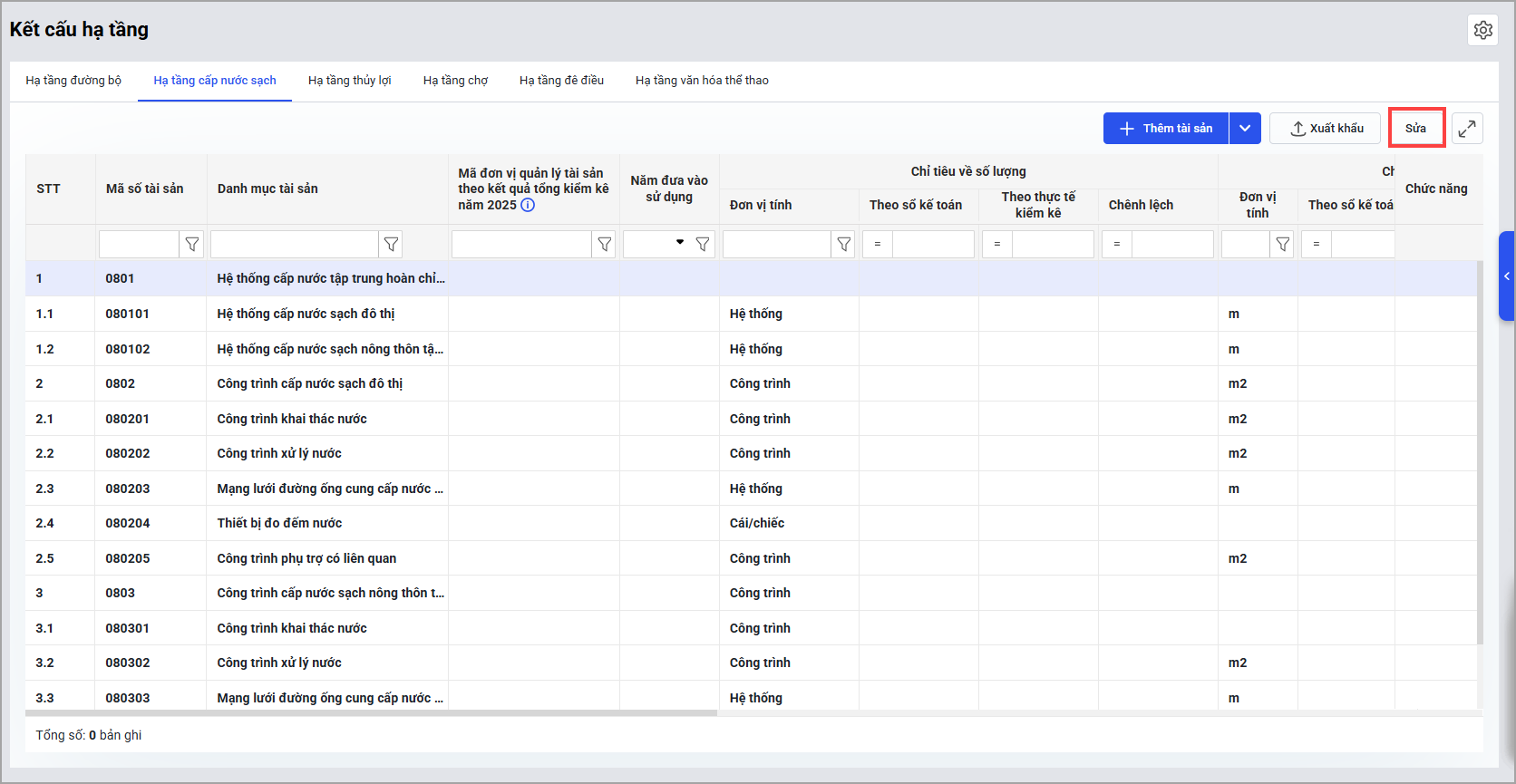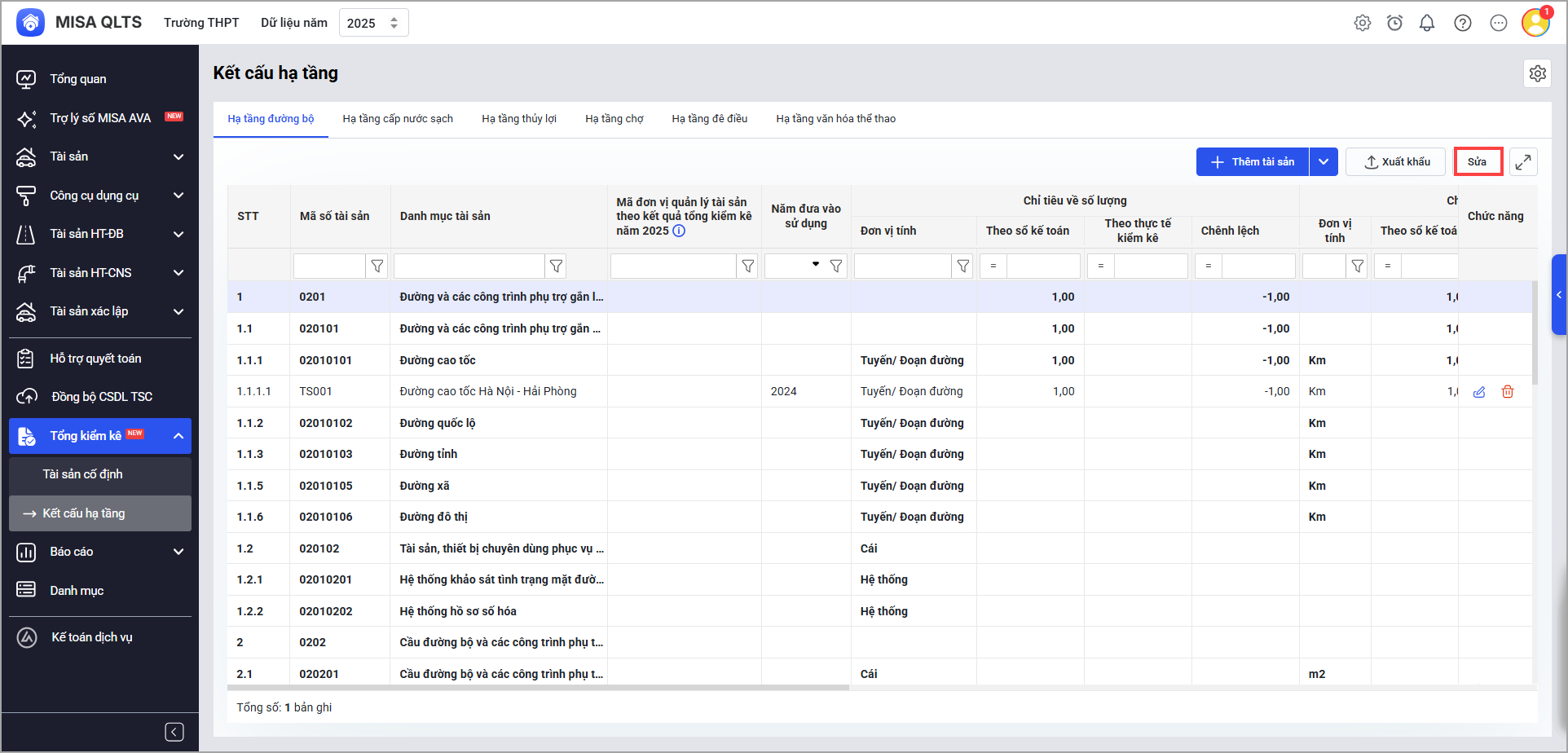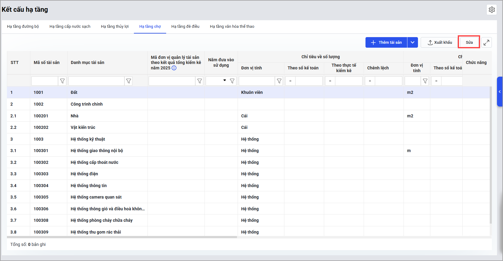 3. Sau khi thêm mới tài sản, có thể nhấn Sửa để cập nhật thông tin