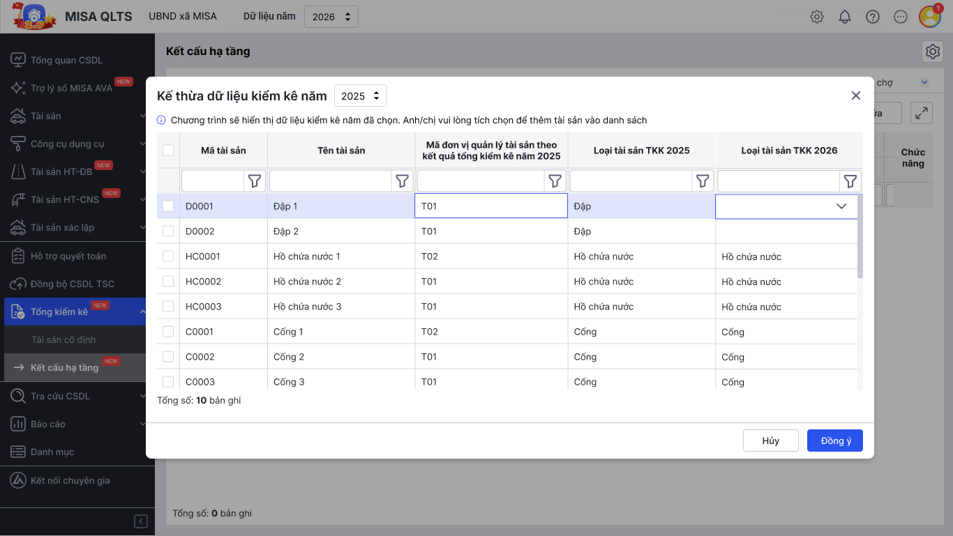 Bài viết hướng dẫn cán bộ QLTS thực hiện tổng kiểm kê tài sản kết cấu hạ tầng 2026. Tổng quan các nghiệp vụ gồm: Thiết lập phạm vi tổng kiểm kê; Thêm tài sản; Sửa tài sản…