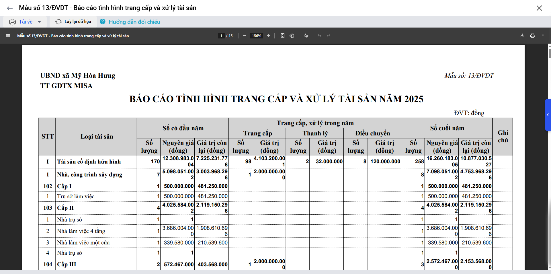 • Số có cuối năm lấy từ danh sách tài sản có trạng thái đang sử dụng vào cuối kỳ báo cáo.