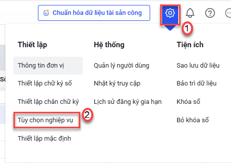 - Vào Thiết lập\Tùy chọn nghiệp vụ.