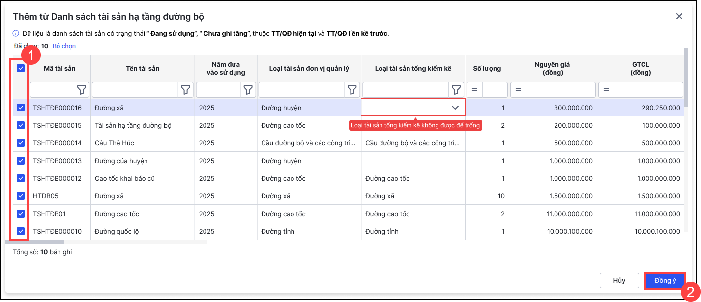4. Hướng dẫn cán bộ QLTS kế thừa dữ liệu tài sản hạ tầng đường bộ đang quản lý trên MISA QLTS để thực hiện Tổng kiểm kê