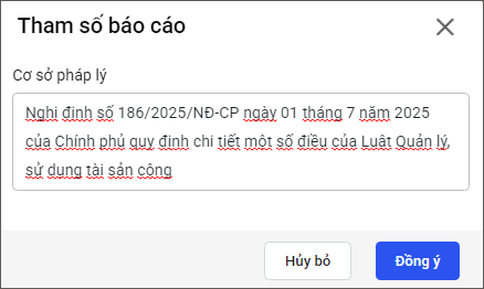 Bước 3: Hệ thống mặc định sẵn Cơ sở pháp lý là Nghị định 186/2025/NĐ-CP ngày 01/07/2025, có thể sửa lại nếu cần. Nhấn Đồng ý.