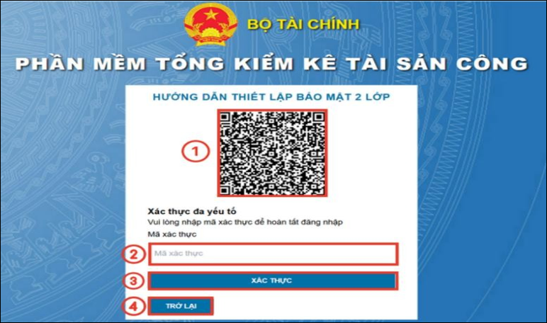 - Sau khi đổi mật khẩu, hệ thống Tổng kiểm kê sẽ hiển thị mã QR (mã QR này chỉ hiển thị ở lần đăng nhập đầu tiên).