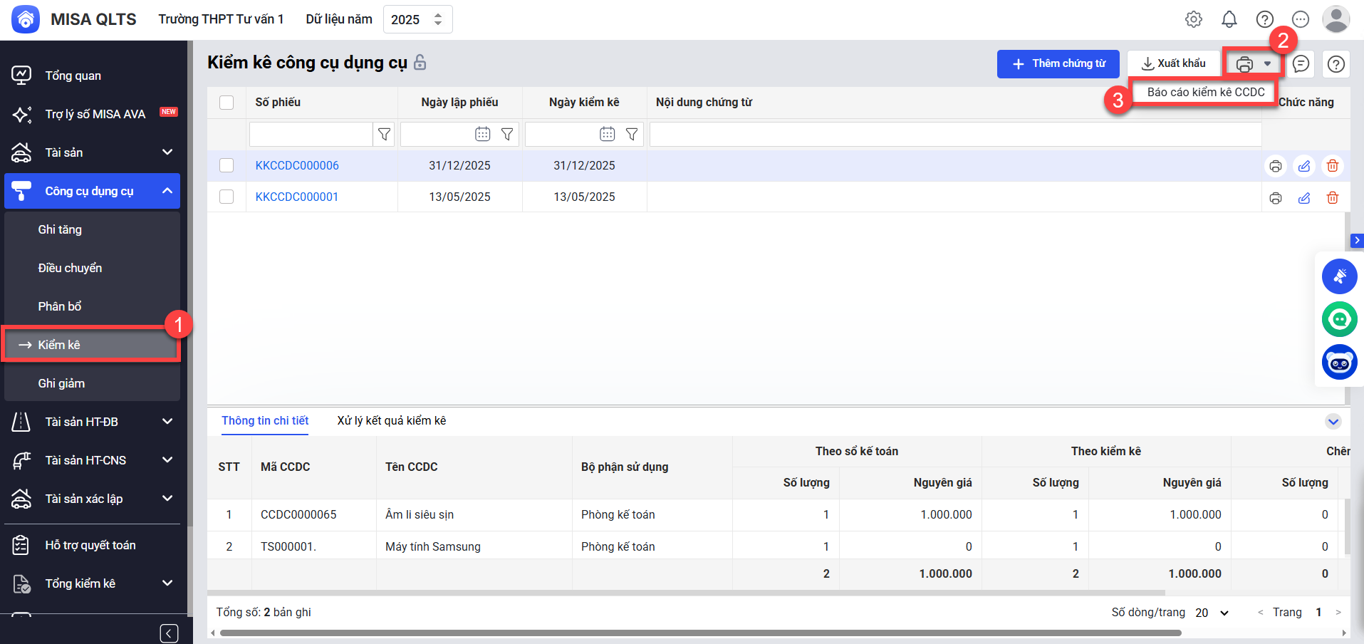 2.2. In Báo cáo kiểm kê CCDC