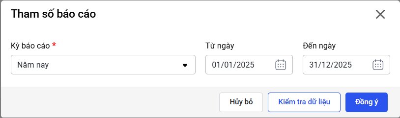 - Hiển thị tham số báo cáo, tích Đồng ý