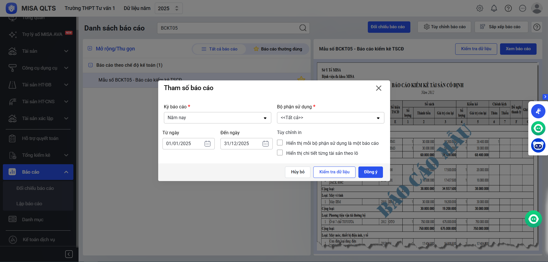 Bước 3: Nhấn Xem báo cáo. chọn Tham số báo cáo\ nhấn Đồng ý