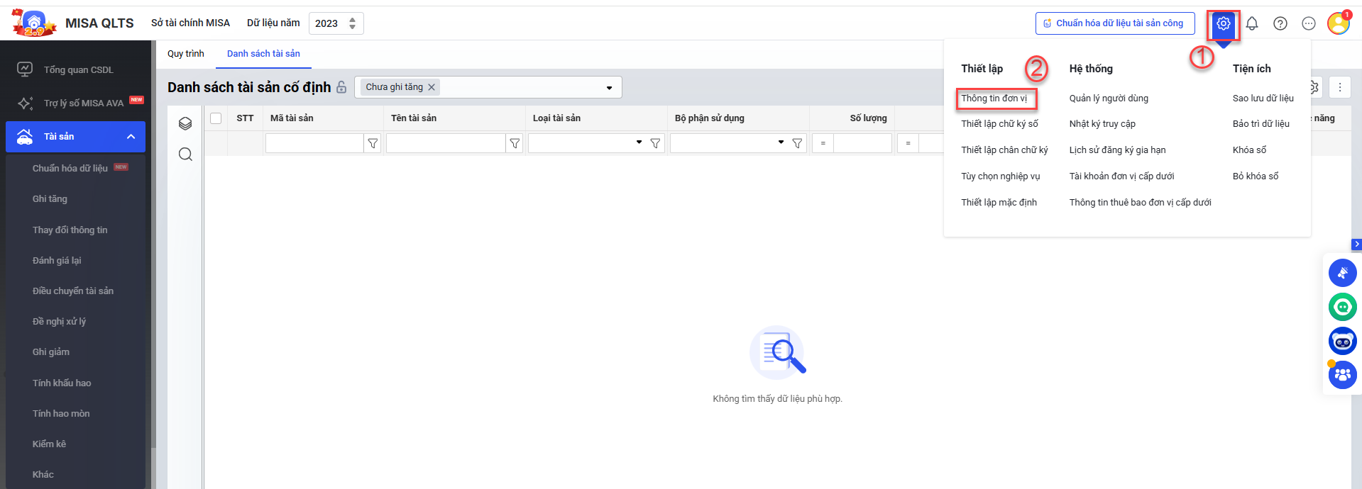 – Vào biểu tượng bánh răng Thiết lập\Thông tin đơn vị