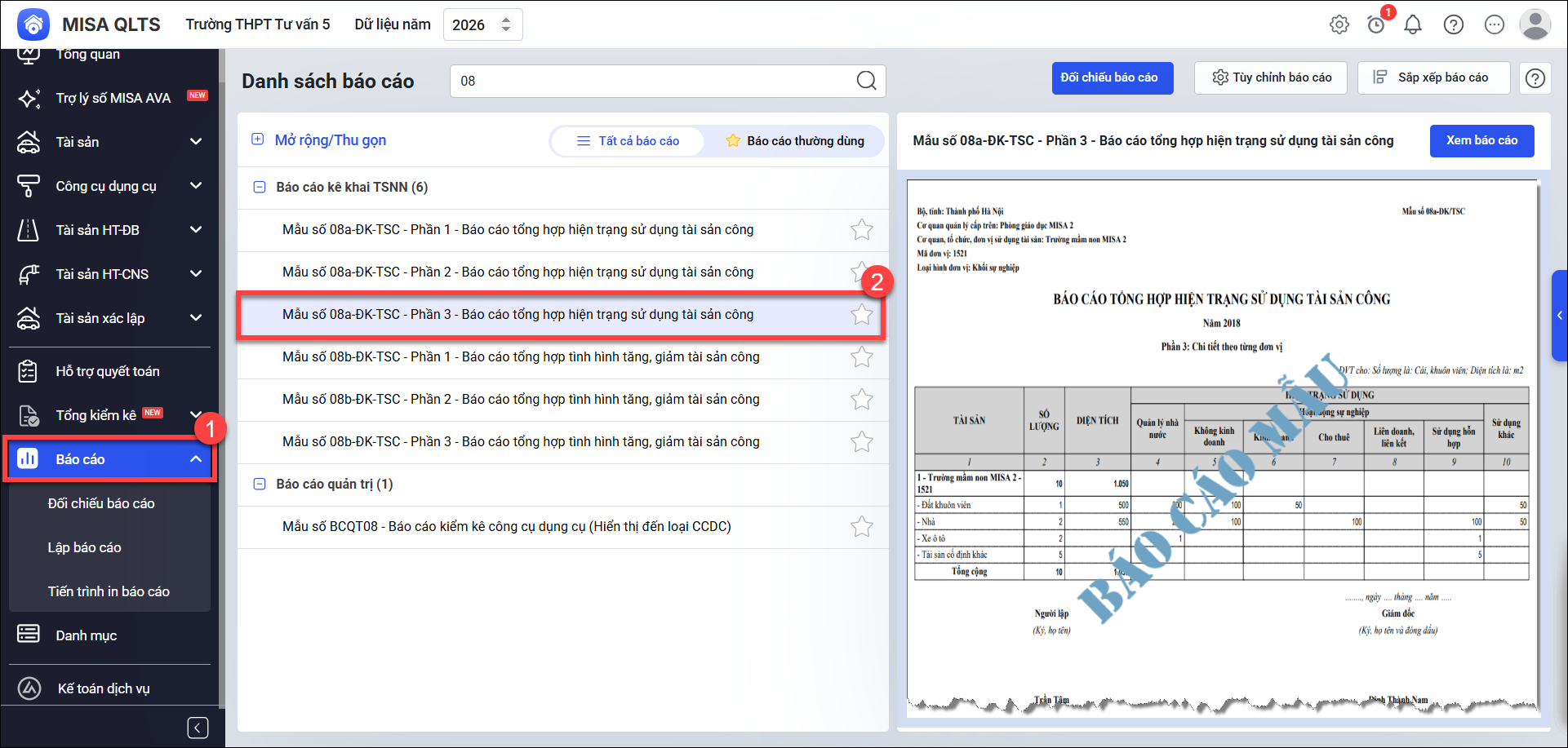 Bài viết này giúp anh/chị in được Mẫu số 08a-ĐK-TSC – Phần 3 – Báo cáo tổng hợp hiện trạng sử dụng tài sản công.