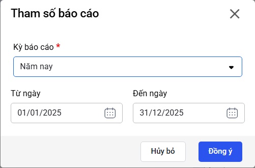Bước 2: Chọn tham số Kỳ báo cáo cần in (theo năm, quý, tháng hoặc tùy chọn)
