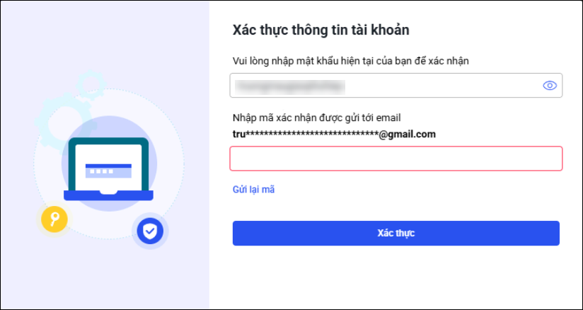 Bước 5: Nhập mật khẩu của MISA ID và mã xác nhận gửi về mail rồi nhấn Xác thực