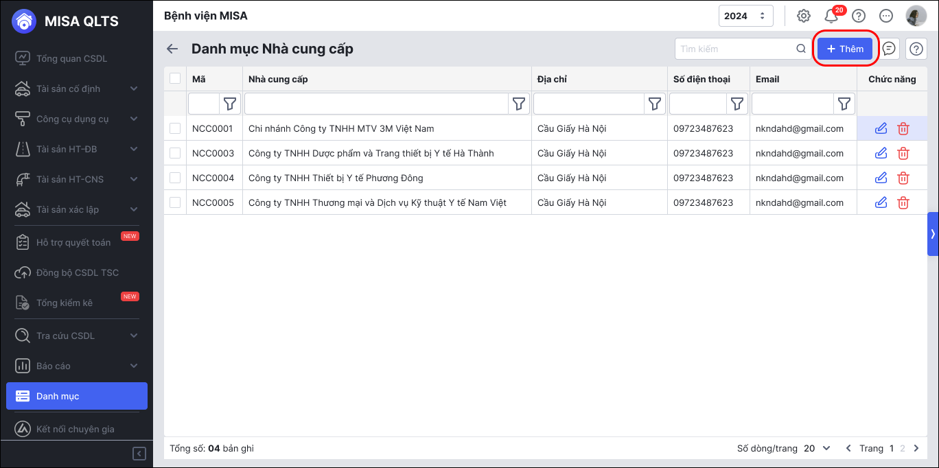 2.1. Thêm mới Nhà cung cấp