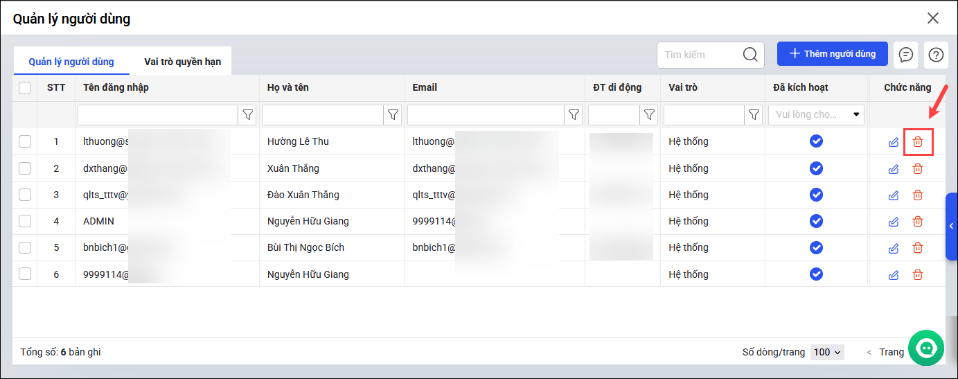 Nhấn vào biểu tượng Thiết lập\Quản lý người dùng.