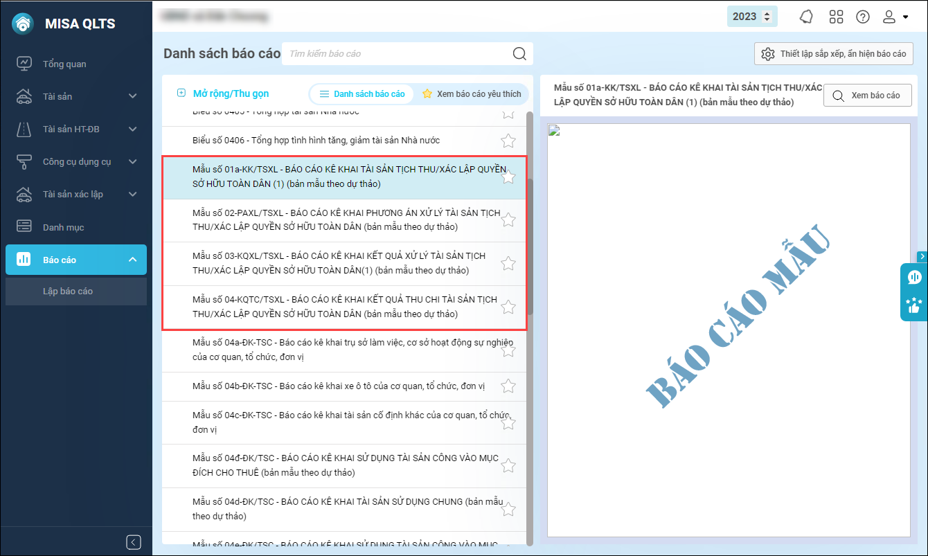 - MISA QLTS vẽ mẫu các báo cáo, chưa lấy dữ liệu.