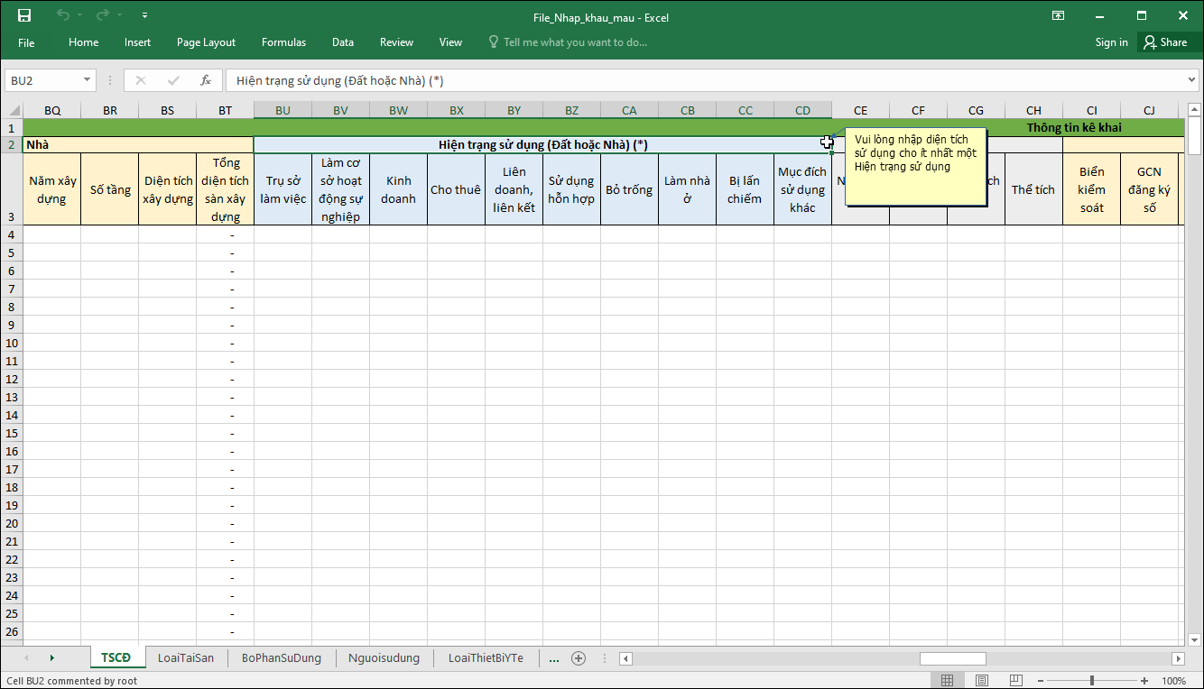 - Bổ sung dòng Lưu ý nhập liệu trên từng sheet.