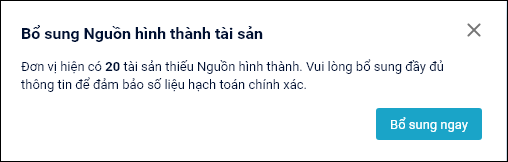 - Khi chọn Bổ sung ngay sẽ điều hướng đến Bảo trì dữ liệu để bổ sung nguồn hình thành tài sản.