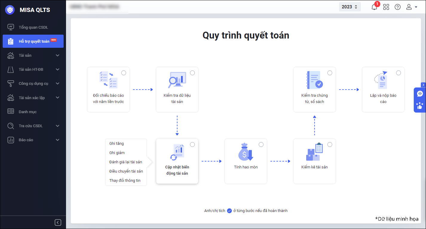 - Cán bộ Quản lý tài sản mong muốn được hướng dẫn cụ thể các bước cần thực hiện khi quyết toán cuối năm để tránh nhầm lẫn, sai sót về nghiệp vụ.