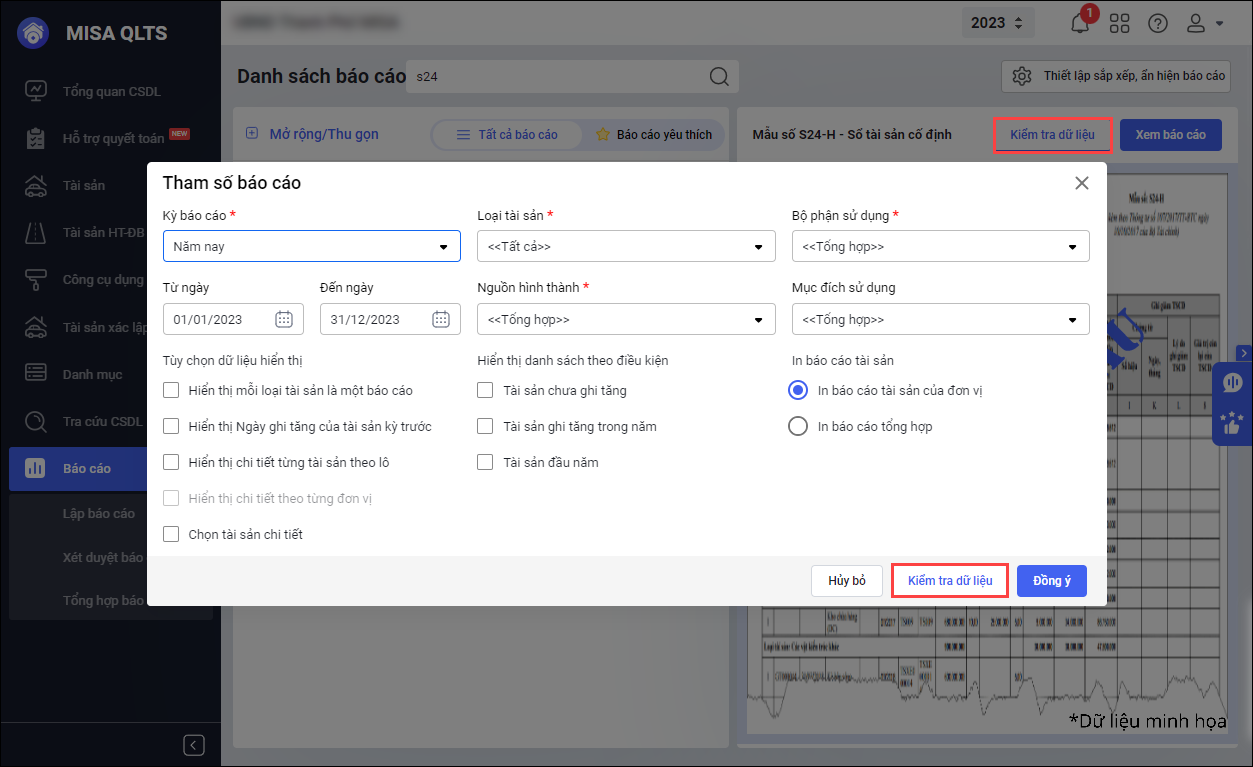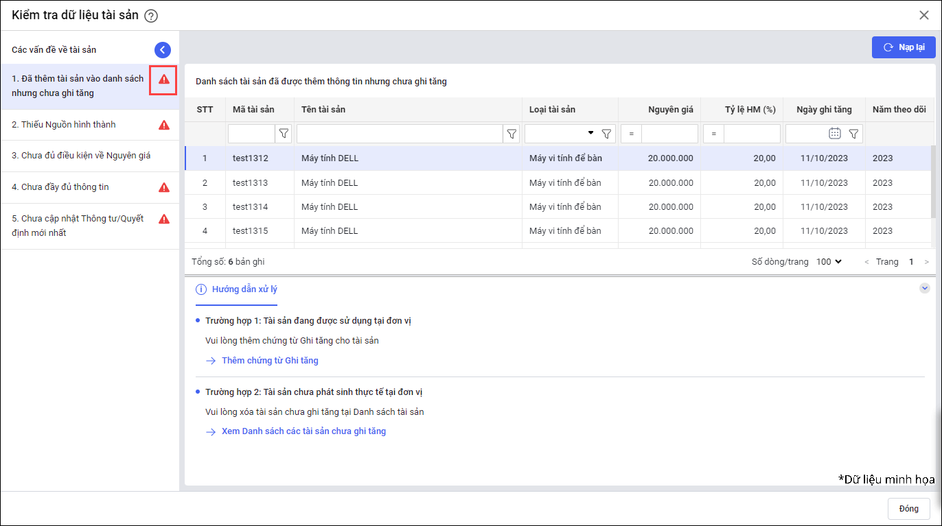 - Bổ sung tính năng Kiểm tra dữ liệu tài sản.