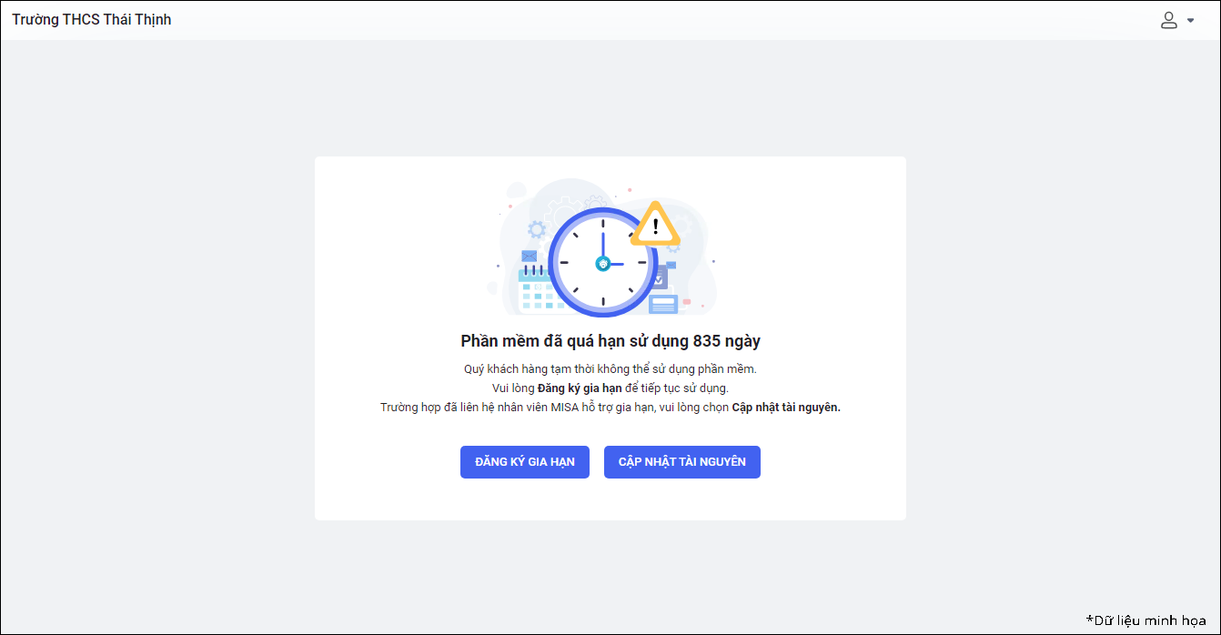 - Tại màn hình thông báo Phần mềm đã quá hạn sử dụng: Thay đổi câu hướng dẫn.