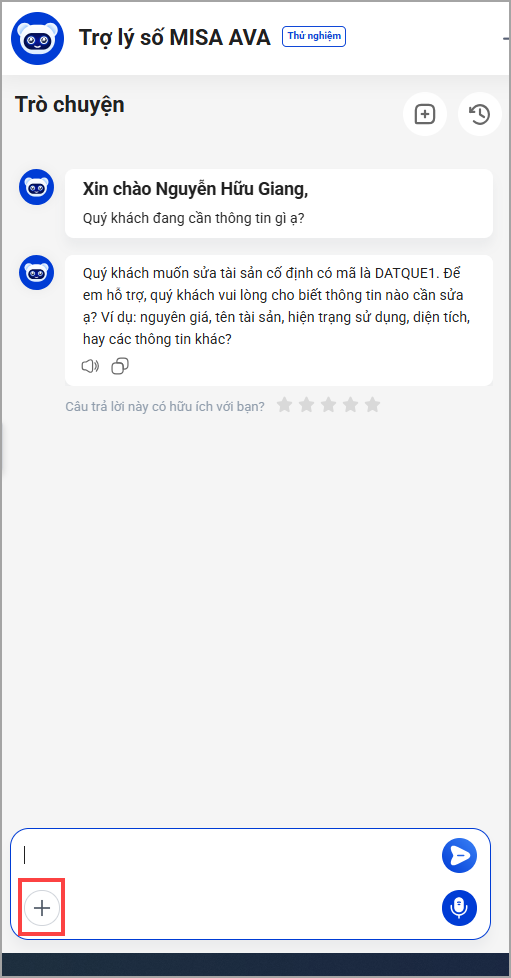 4. Trợ lý số MISA AVA hỗ trợ Cán bộ QLTS thêm/sửa nhanh thông tin tài sản